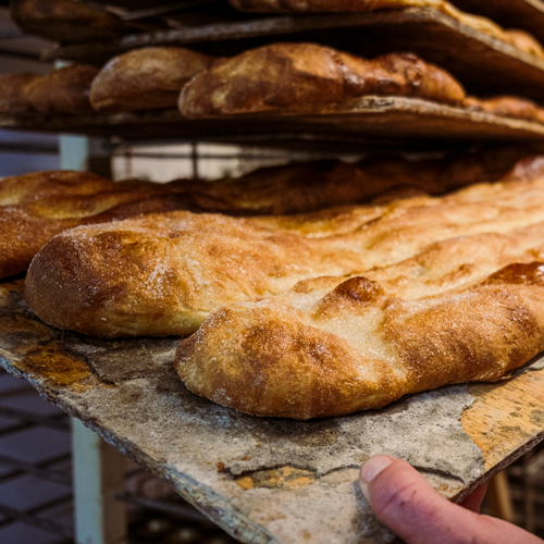 Productes artesans fets amb la mestria flequera. Pans de fermentació lenta que en garanteixen l'aroma i la conservació, i coques tradicionals que integren els productes més genuïns del nostre rebost en cada època de l'any.